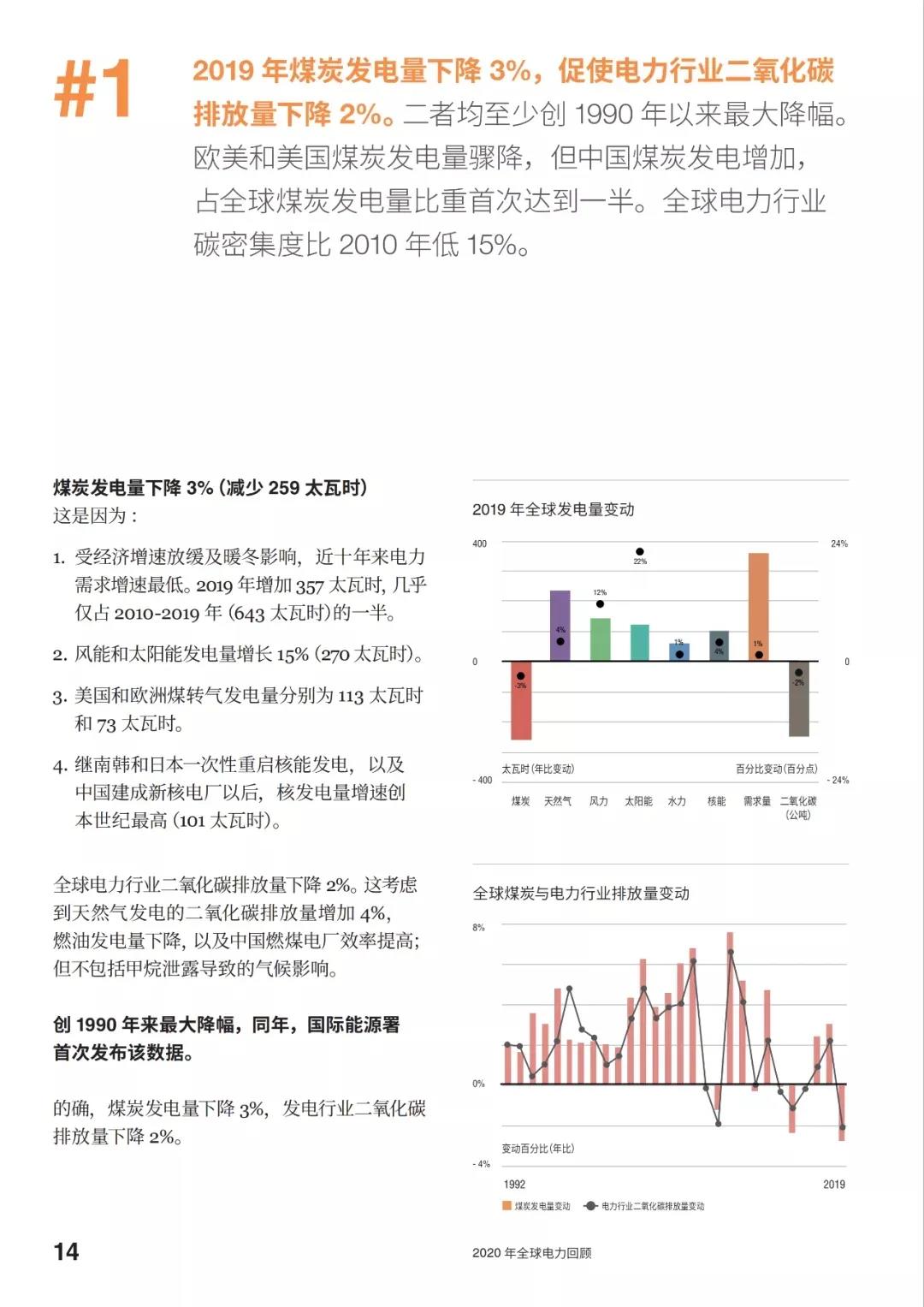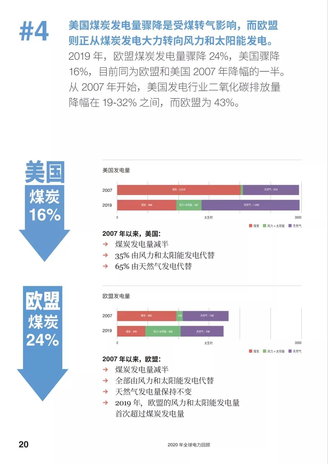 2020年3月,Ember(原Sandbag,英国独立智库,致力于加速全球电力转型)发布《Global Electricity Review 2020》,该报告基于全球224个国家和地区2000-2019年电力消费及分品种发电数据,提炼总结4大关键发现,对全球、中国、欧盟、印度、美国等地区进行了重点描述,对用电量、分品种发电量、分品种装机、电力行业碳排放、未来情景展望等进行了深度剖析,并对数据来源和处理方法进行了详细说明。
